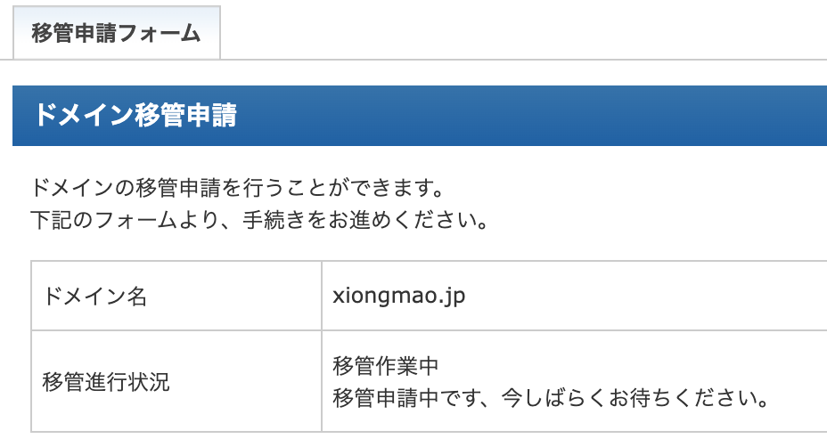 メールのレスポンスの良さもあり、問い合わせをしたエックスドメイン にドメイン移管することを決めた。